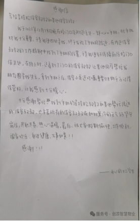 一面面锦旗,是认可;一张张卡片,是激励 !锦旗、表扬信的背后,是老师和同学与物业人之间的温暖故事,赞扬的话语背后,是老师和同学们对创昂物业人的认可与信任。今后,创昂物业将继续坚持以服务温暖人心,坚持以全方位、细致化、贴心周到的服务好每位老师和同学,把满意服务做成感动服务,我们会一如既往的为师生提供优质服务,为守护平安校园贡献自己的一份力量。