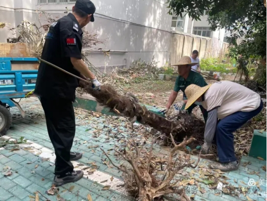 华师大创昂物业管理团队带头上阵,先聚焦学生公寓14栋后方,合力清走堆积杂物,让杂乱角落重归整洁,用实干为校园“减负”;后续两个周三,又相继清理8栋周边及湖边枯树枝,每一次俯身劳作都让校园更显清爽。现场工作人员额头带汗,脸上却漾着笑意,那股子热忱与活力感染力十足,正是“爱校”鲜活的模样。