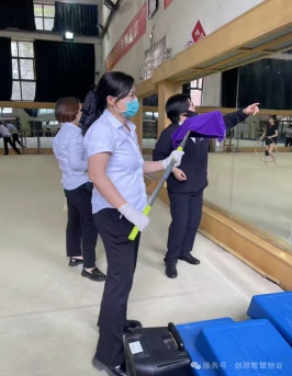 “我爱我校”行动走进体育场馆!创昂物业管理团队聚焦细节卫生:墙角的蜘蛛网被细心扫净,场馆玻璃逐块擦拭得透亮如新。从高处到立面,不放过任何一处角落,让运动空间更显清爽洁净,为师生的活力时光添一份舒心~