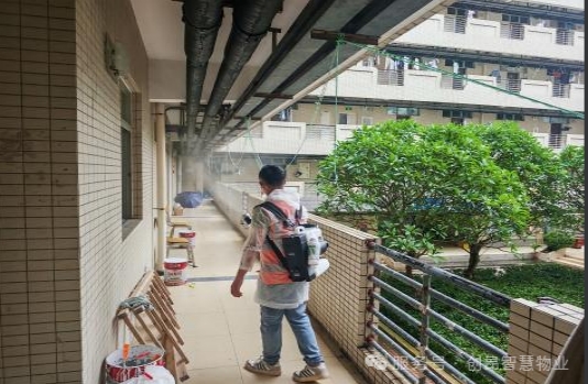 创昂物业展开行动,对校园公共区域、学生宿舍、教学楼等重点场所进行全面环境卫生整治,彻底清理积水、垃圾及卫生死角,同时,加强日常消杀力度,对绿化带、水体景观周边、垃圾桶集中点等易滋生蚊虫的区域实施药物喷洒,对于下水道、灌木丛等成蚊藏匿的隐蔽角落实施热烟雾机高效消杀,全力阻断“两热”等蚊媒疾病传播链条,确保校园环境整洁安全。