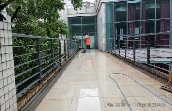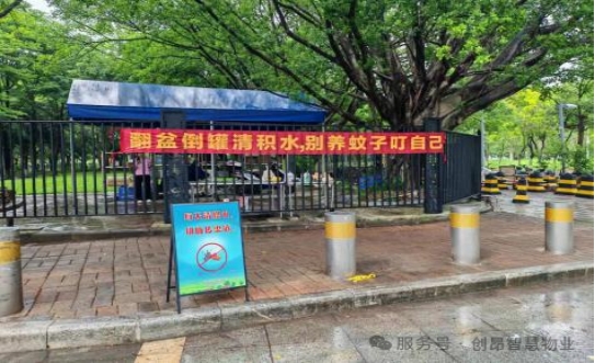 创昂物业做到每天不定时检查岗位周边环境卫生,及时清理花盆、容器等易积水区域。